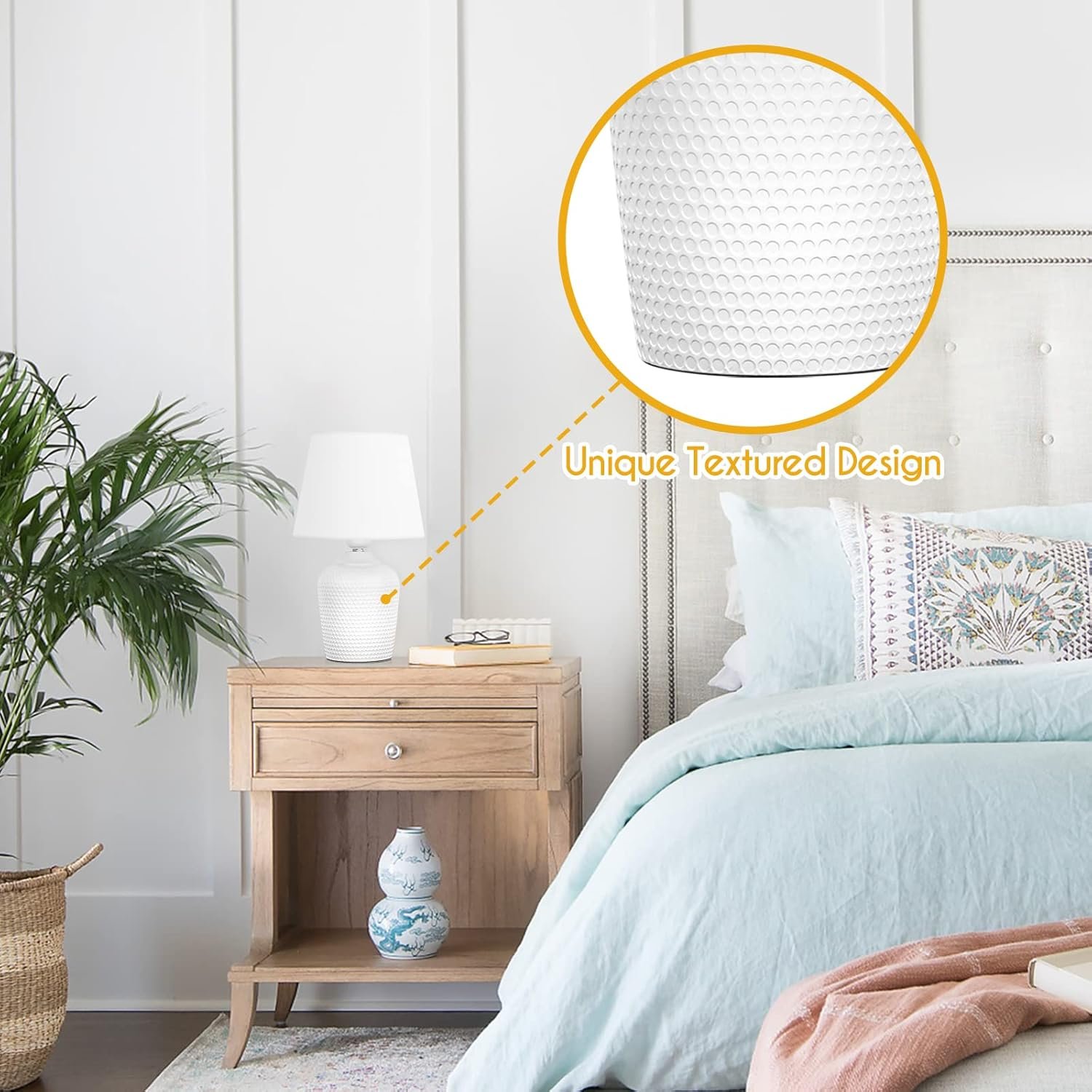 Small Table Lamps Set of 2, Bedside Nightstand Lamps for Bedroom Kid’s Room, Cute Desk Lamps with Studded Texture Base for Reading Nursery Living Room Office, White